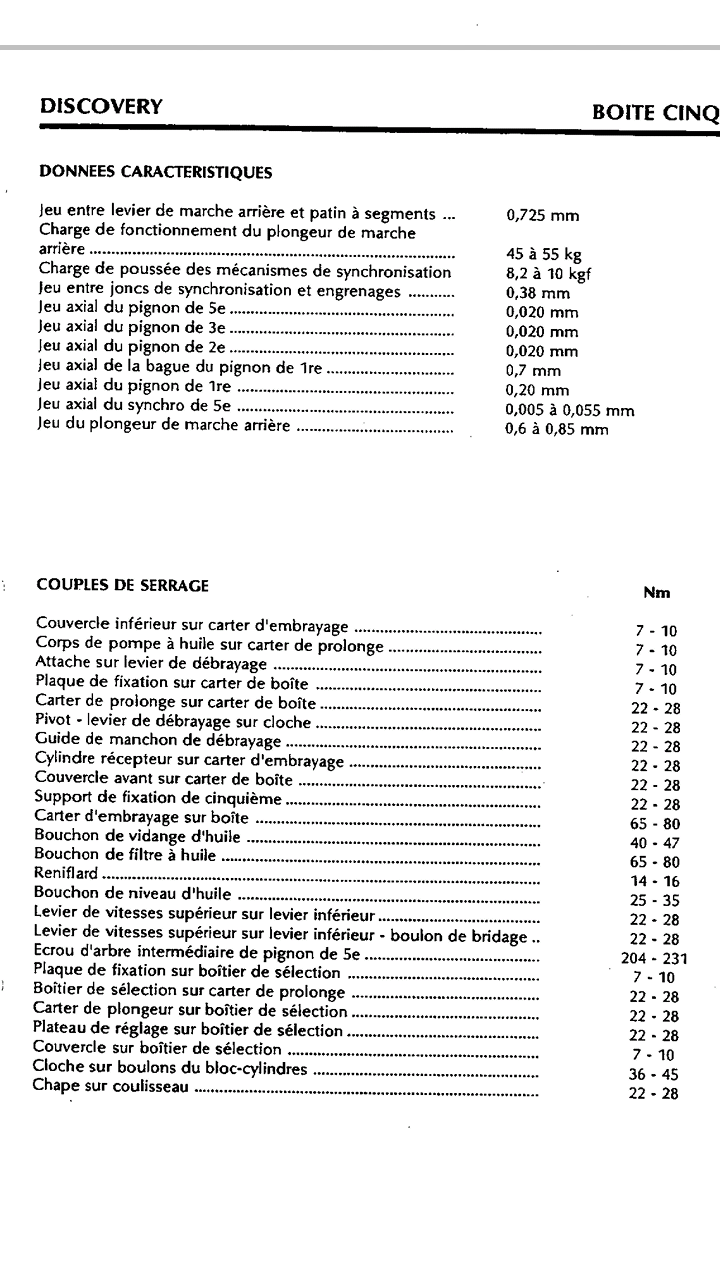 Pour la doc la seule trouver en français est celle du discovery I de 1989 qui semble être la même pour la lt77 apres comparaisons car jai également celle du 2,5LTD mais en anglais... La bague que vous me parlez est celle du 5ieme pignon en sortie de boite, moi je vous parle du jeu laisser entre la bague de première sous la référence frc5243 (rep10) et le roulement (rep25).
