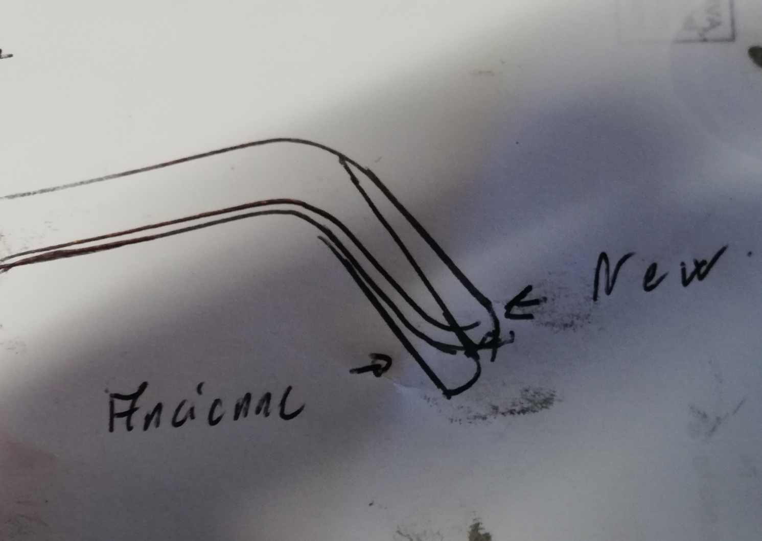 Pour récupéré le même angle que l'ancienne, il faut tordre le levier de sa propre épaisseur...