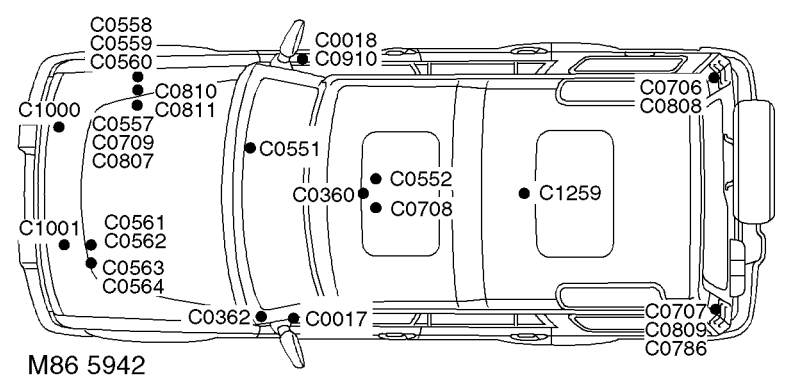 Donc le connecteur de masse est le C0707 situé dans le coffre coté gauche. les 2 masses sont sur les Pin n°2 et 7