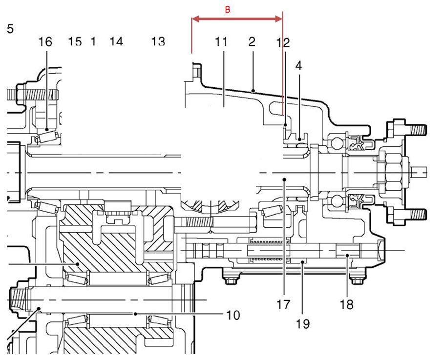 La première chose à faire est de monter un joint entre le carter avant et le carter principal (ou 2 joints si votre BT est équipé de joints) et d’évaluer l’épaisseur du joint une fois le carter serré au couple, selon la même technique que pour le réglage de l’arbre d’entrée.