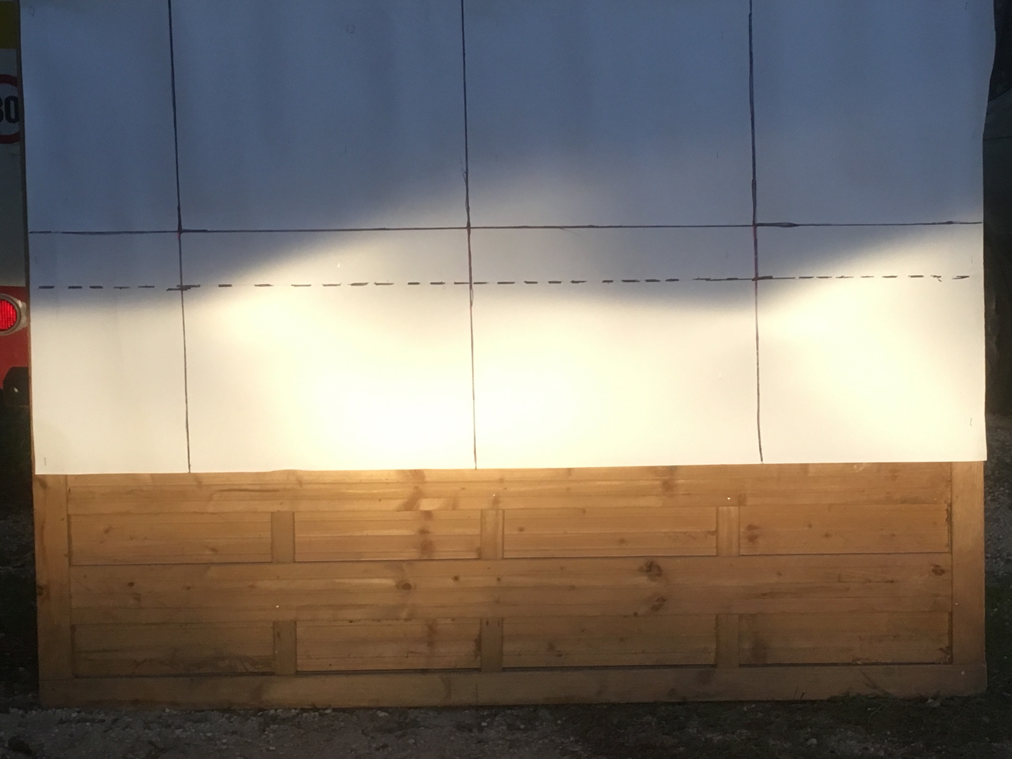 Mets les centres un peu plus bas, au milieu entre le L et ton trait horizontal.Archibald254 a écrit : La photo 2 en "code" à 4m on voit les repères de references (centre de la voiture, centres des 2 optiques L, repere de 10 cm en dessous du niveau des optiques)