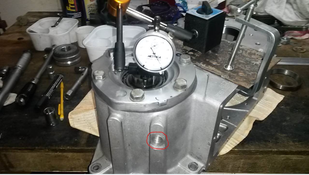 A mon avis, même avec un problème de joint spi, l’huile de la BV ne peut pas passer dans la BT, puisqu'il y a un orifice pour que l'huile fuyant de la BT ou de la BV puisse s'écouler au sol, voir photos ci-dessous. A mon avis, ta fuite est la conséquence du trop plein de ta BT. Sur ton disco, n'y-t-il pas un bouchon situé en point haut, sur un orifice destiné à accueillir une sonde de température, à l'endroit cerclé en rouge sur la photo ci-dessous ? Si c'est le cas, ce bouchon aurait pu être pris pour le bouchon de remplissage, causant un sur-remplissage. Comme tu ne sais pas comment a été fait le niveau, si j'étais toi, je roulerais un peu comme ça et contrôlerais régulièrement pour voir ce que ça fait.