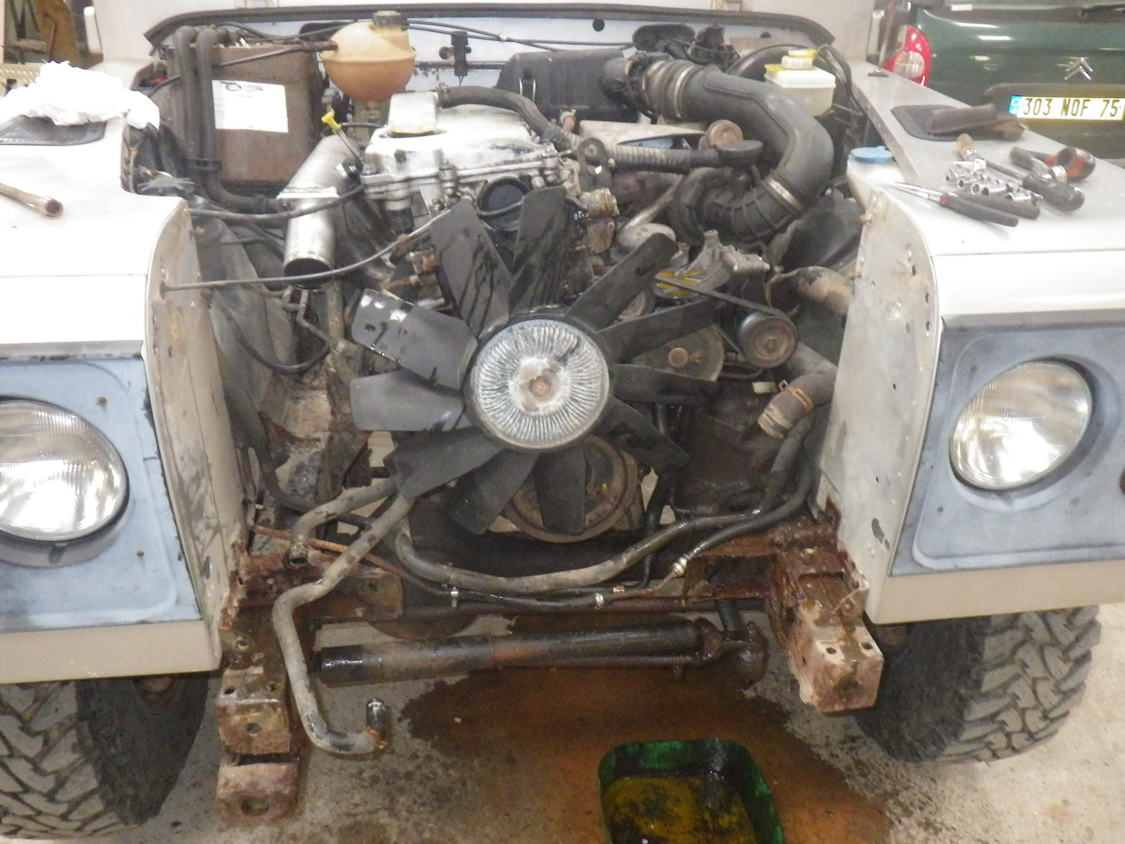 Et ben voilà. Cela faisait un petit moment qu'en regardant sous les jupes de ma belle anglaise, j'avais les boules de voir se détériorer ce châssis. N'oublions pas que mon def me sert à mettre à l'eau mon boat.