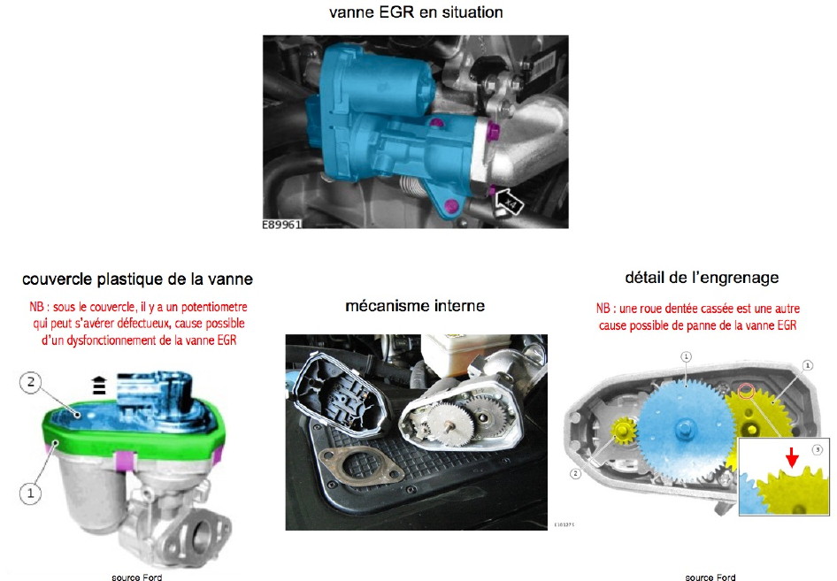 ) le blocage de la tige de soupape dans son guide par la calamine, ce que j'ai effectivement pu observer sur l'EGR de mon tracteur.