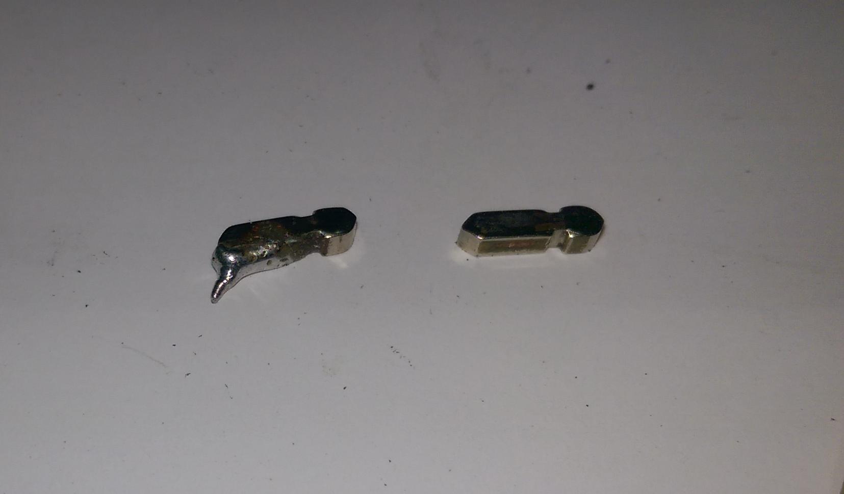 Recharger à l’étain le "bonhomme" afin d’éviter que ce dernier ne se positionne en travers dans son logement. Puis le limer et l’ajuster pour obtenir les bonnes dimensions.