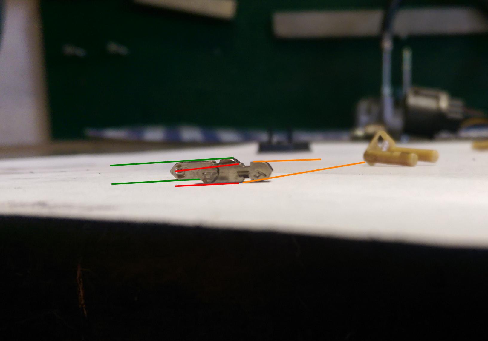 Les traits en rouge et orange ne sont plus parallèles, usure de la pièce