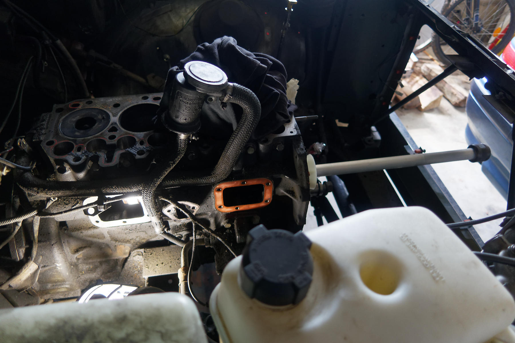 Palier 3 : il faut l'enfoncer de l'arrière vers l'avant du moteur : j'ai dû utiliser la rallonge seule (plus courte) et il restait 10 cm approx entre le bout et le tablier... pas facile. J'ai tapé avec le coté de la masse à cause du manque de place.