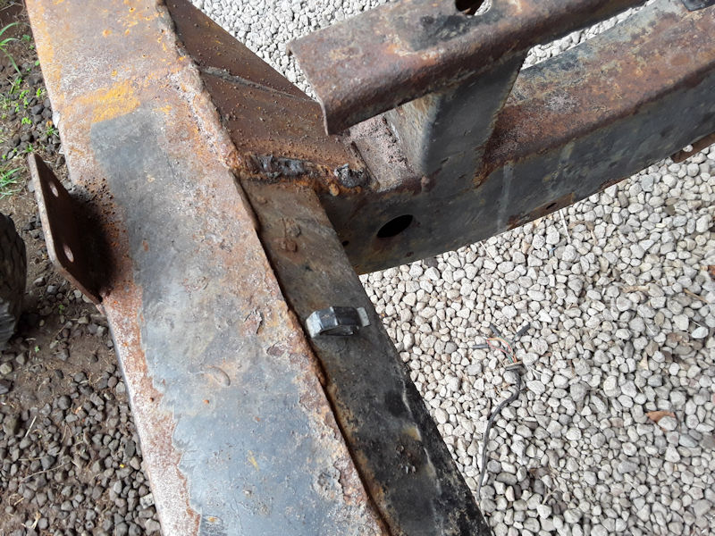 Inspection du châssis : Ce sont surtout les parties avant qui accueillent le highlift qui sont pourries. Encore un formidable nid à eau et à boue sur nos chers LR...