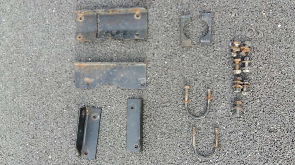 Je n'ai jamais monté de barre sur un 90. Sinon que je pense que les brides ronde de 50 doivent se monter sur le tube rond qui est devant les roues roue arrière sur le châssis, pour le reste, il doit peut-être te manquer quelques vis ???
