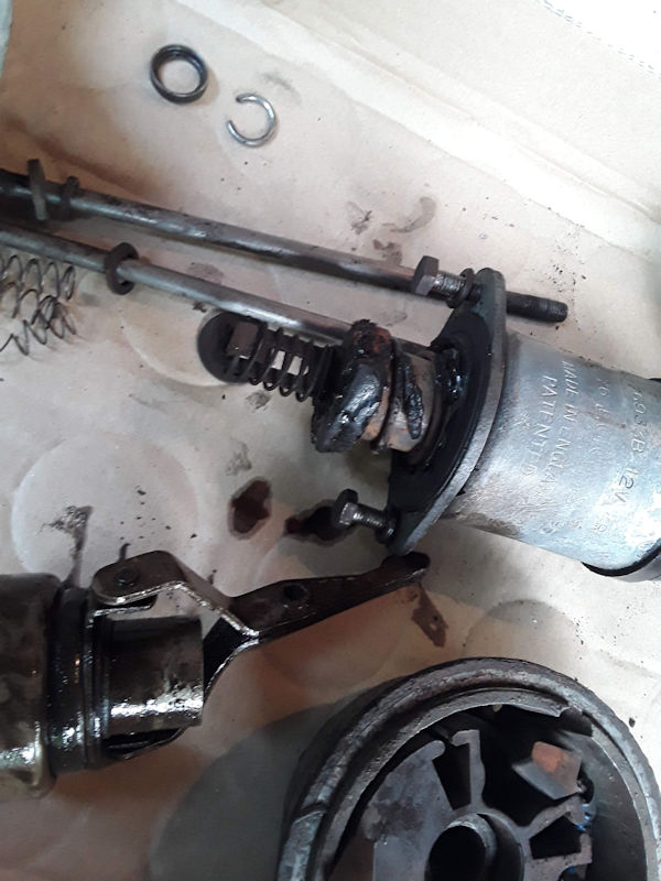 Tous les joints sont morts. Les ressort des charbons sont fichus et introuvables sur le net. En revanche pas de problème pour trouver les charbons. Je pense refaire des ressorts avec des cordes métalliques de guitares. Tout du moins faire un essai. Vous avez une astuce à partager là-dessus ? Toutes les pièces sont maintenant nettoyées. Je vais essayer de recuivrer le "piston" qui coulisse dans le solénoïde avec un bain électrolytique mais avant, je dois me confectionner un générateur de puissance à partir d'une ancienne alim ATX de PC.