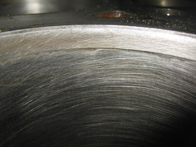 Vue de loin comme ça, tout est lisse brillant et non marqué, mais c'est HS pour la plus grande partie: De plus près tu peux constater le changement de couleur, le régule est parti comme on dit et l'alliage bronze apparait, pas bon du tout, signe d'usure certain. En contre partie, dans le cylindre, il ne faut pas que cela soit lisse lisse, car c'est le signe d'un cylindre usé ou lavé. Il est préférable de voir les rayures de honage ( ou déglaçage justement donc pas lisse). Contrôle de l'usure du cylindre en vérifiant le jeu à la coupe, tu peux voir les rayures sur le cylindre, mais là, dans ce sens là c'est bon
