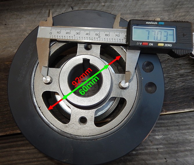 J'ai un damper neuf pour le 200tdi, l'outil LRT-12-080 ne convient pas, l'entraxe des trous taraudés est de 77mm, (j'ai vissé 2 morceaux de tige filetée avec un centre fait au tour pour la mesure)