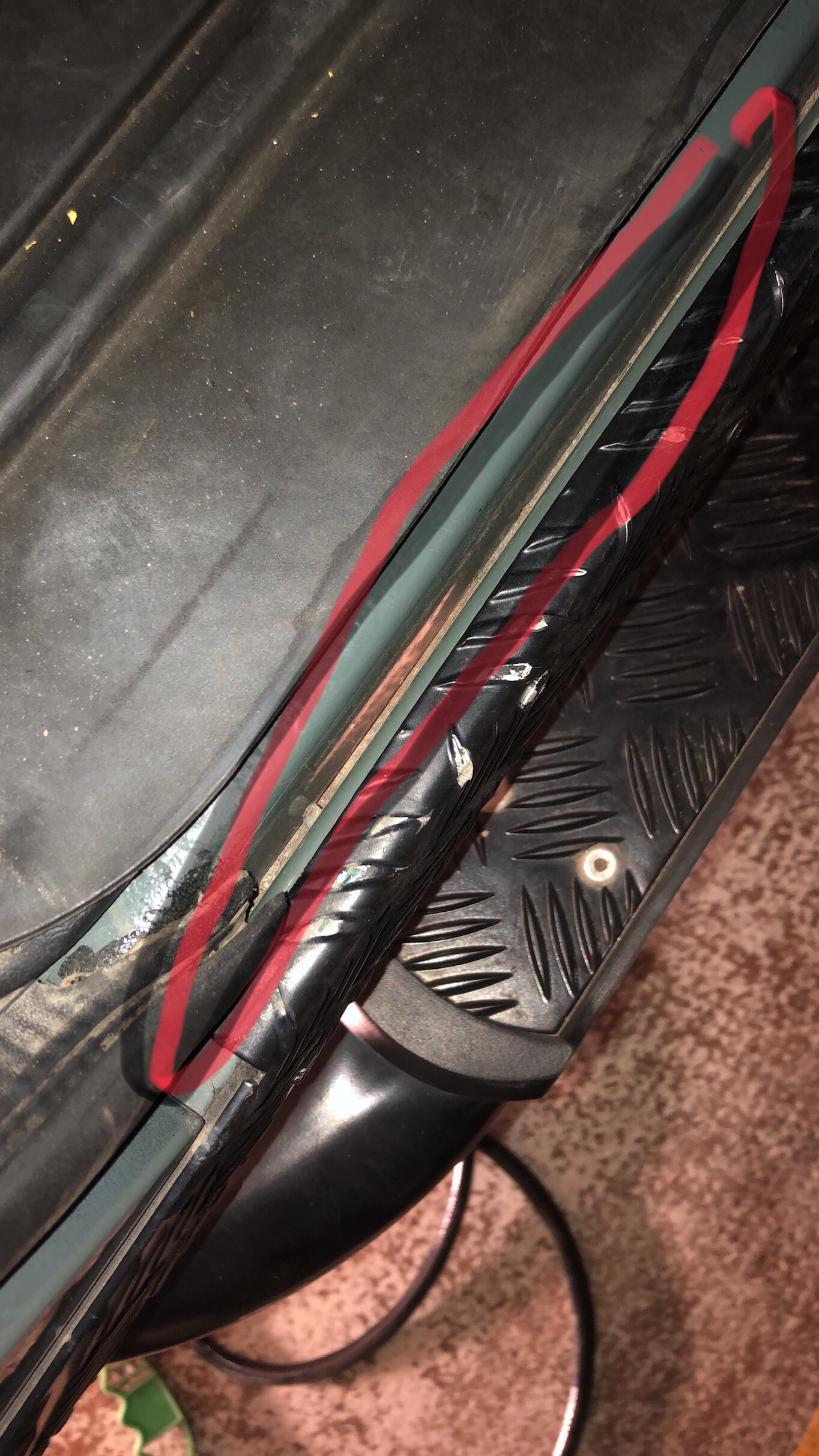 Il y a un joint entre la carrosserie et le châssis au niveau des portes (quasis sur toute la longueur du defender) le miens est foutu. J’ai de la poussières ou de l’eau qui fait surface.