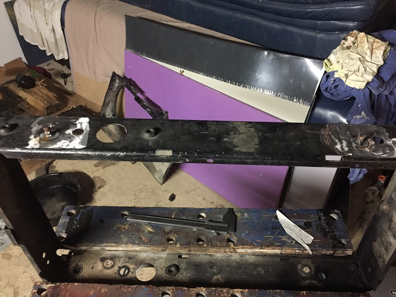 Dans l'attente du passage du soudeur, j'ai essayé de positionner le radiateur. il y a 30 mm de différence de hauteur entre le cadre du 110 et celui du 300TDI ( dont 16 mm de support en dessous du cadre du 300 tdi).