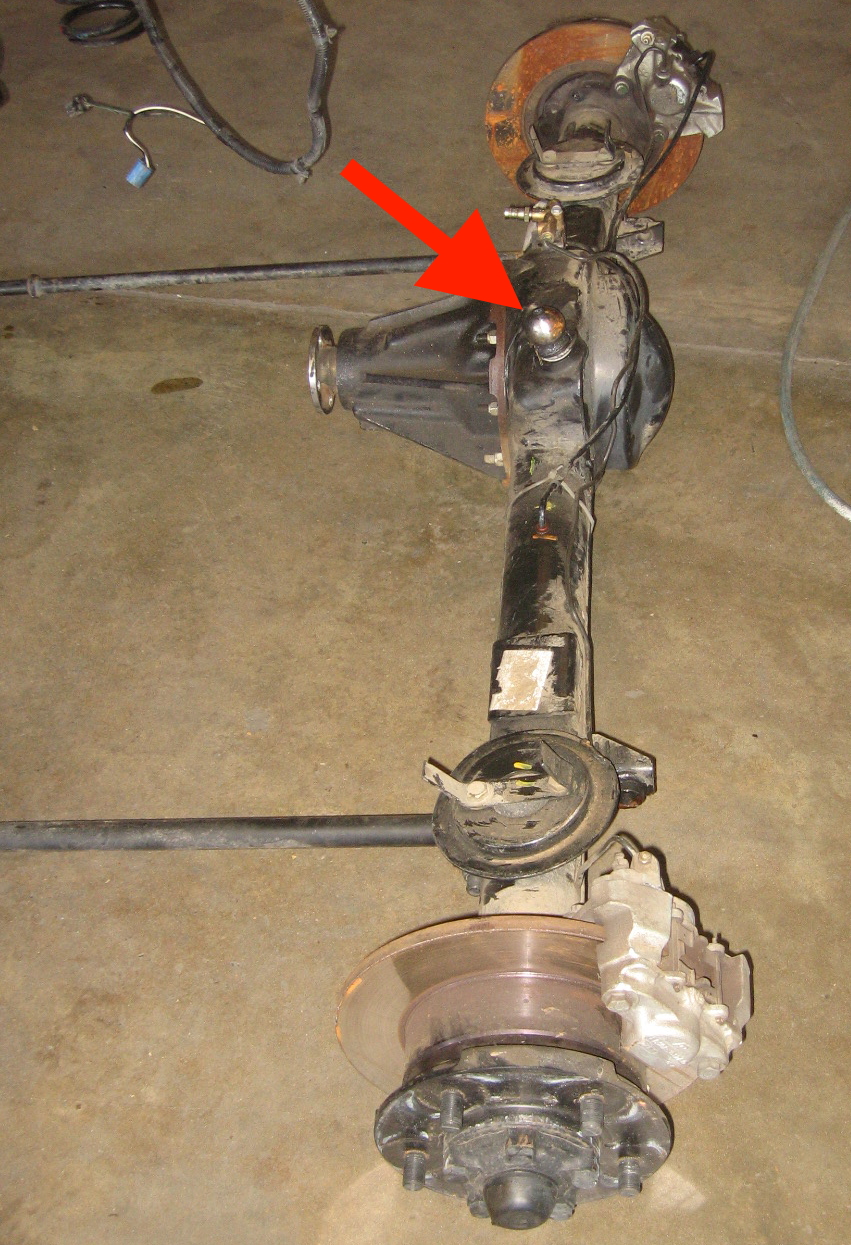 Salut, elle est située au centre du pont arrière: Sur cette photo, tu peux voir le support de rotule de pont arrière commencer à s'arracher. Le gros écrou, c'est celui qui sert à la fixation de la rotule de pont: A+pich a écrit : Pourrais tu me montrer une photo de ce que tu me dis?
