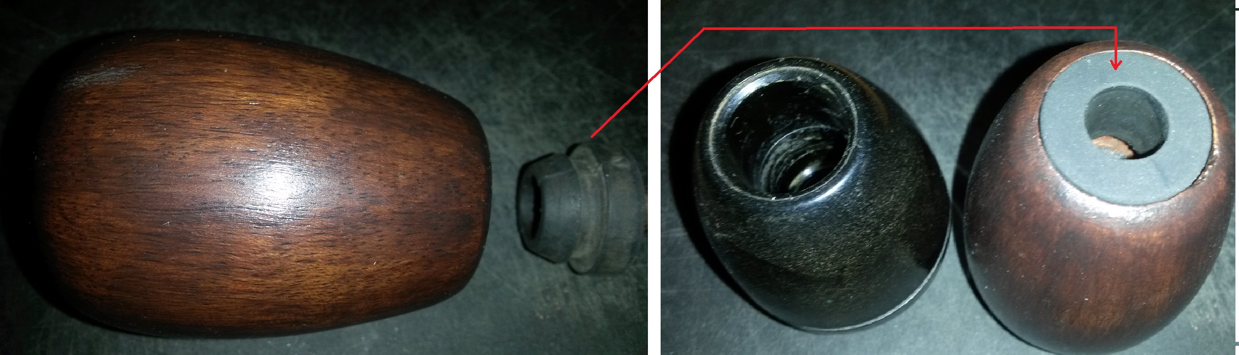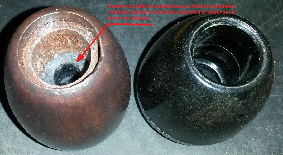 j'ai trouvé dans mes archives un joint qui va amortit les mouvements du levier de vitesses, puis j'ai revissé le nouveau pommeau sur le levier de vitesses.