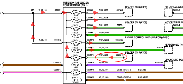 Edit3: Suite à notre conversation téléphonique, je me suis rappelé qu'il y avait un micmac entre la numérotation des fusibles sur le schéma, et celle de l'étiquette de la boîte à fusible...
