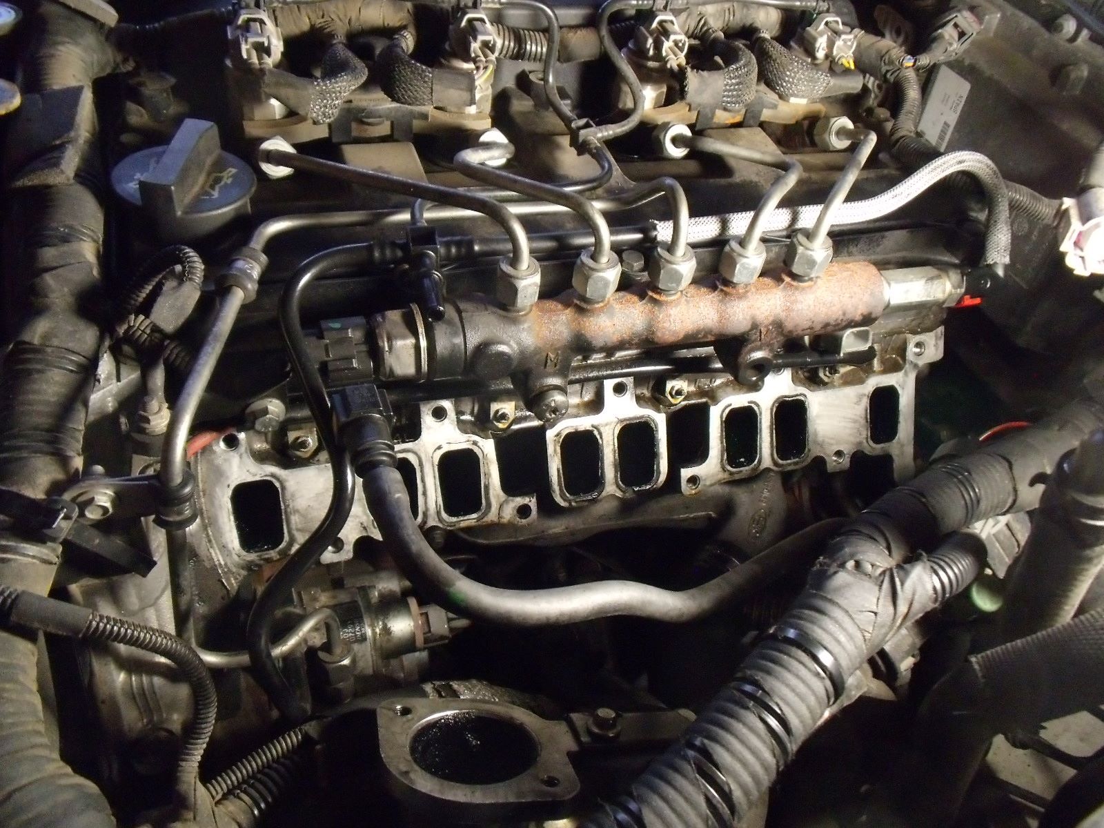 Collecteur d'admission déposé. On a accès aux bougies de préchauffage.