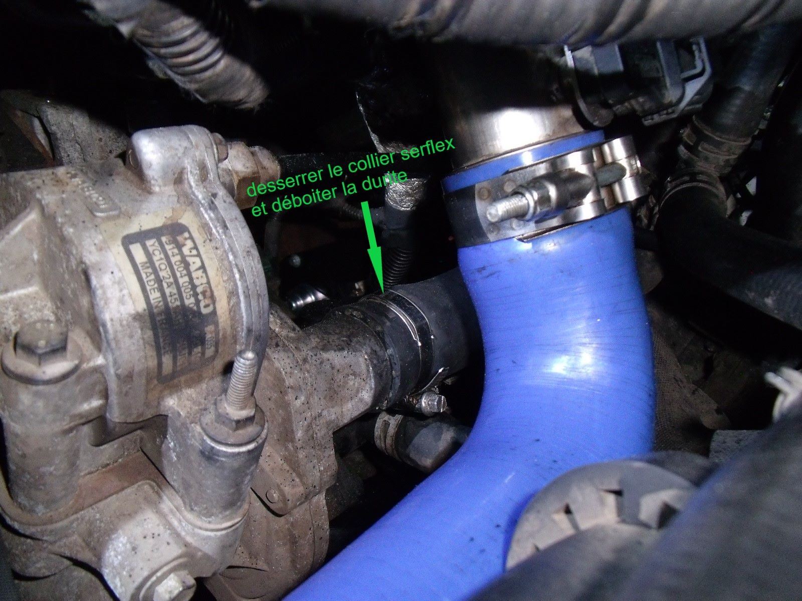 Desserrer le serflex et déboîter la petite durite.