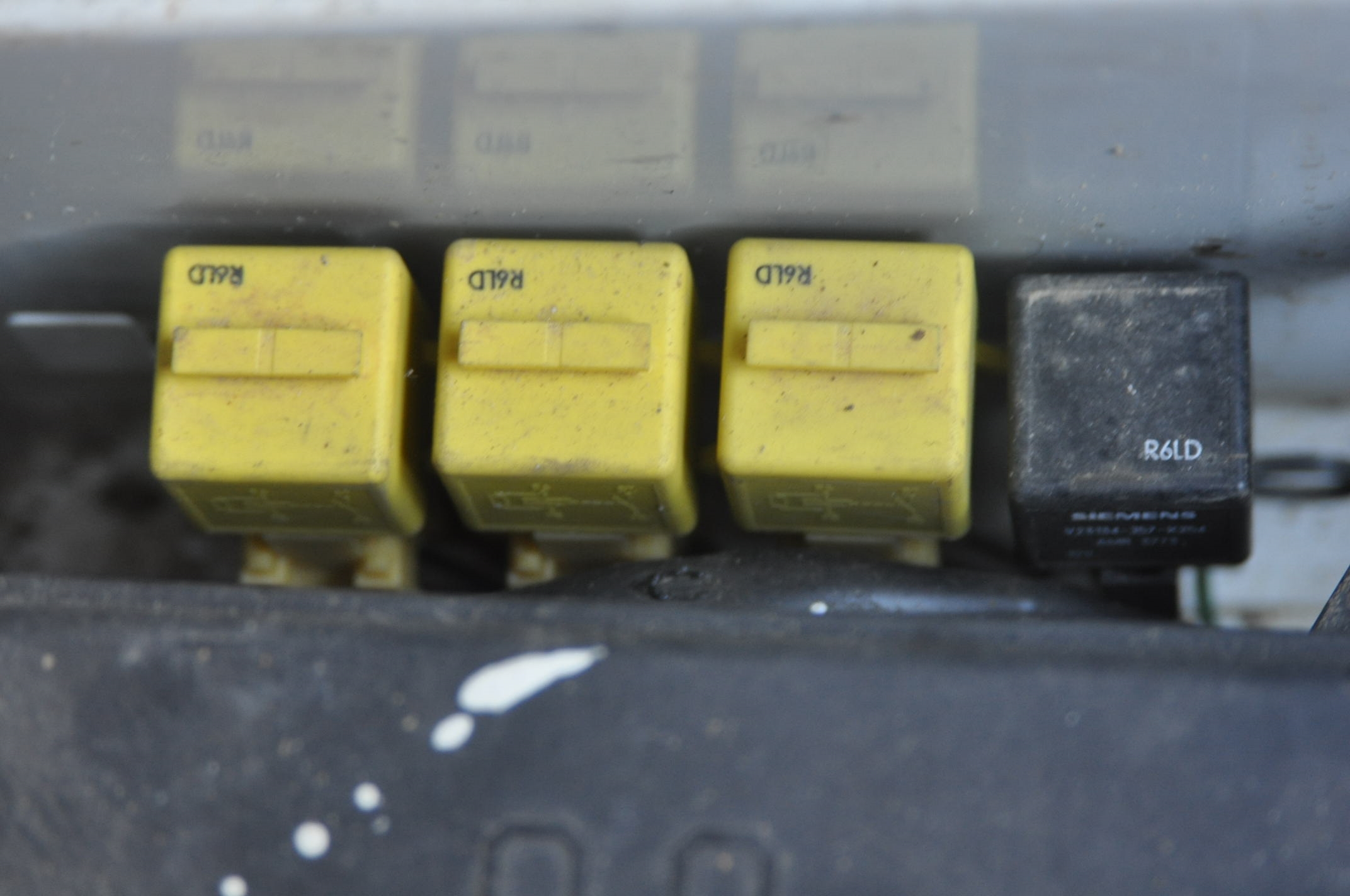 Le "Main" relais, peut avoir une couleur jaune ou noir selon l'année, la position est souvent le premier à droite, mais là aussi, il y a des nuances possibles, la façon sûr de le repérer, c'est les couleurs des fils, qui arrivent sur le support.