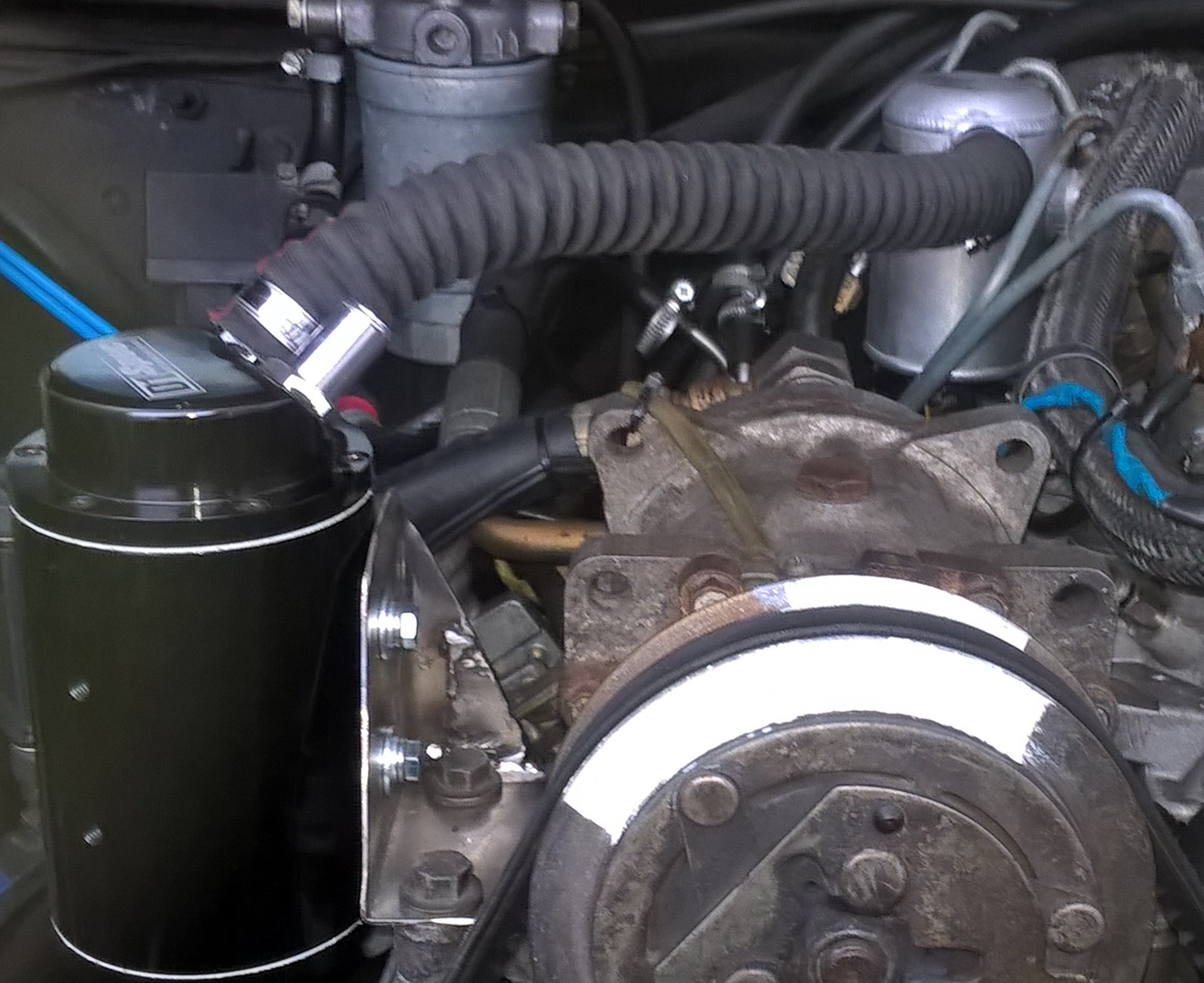 Fixé au support de compresseur de clim avec une tole inox maison...