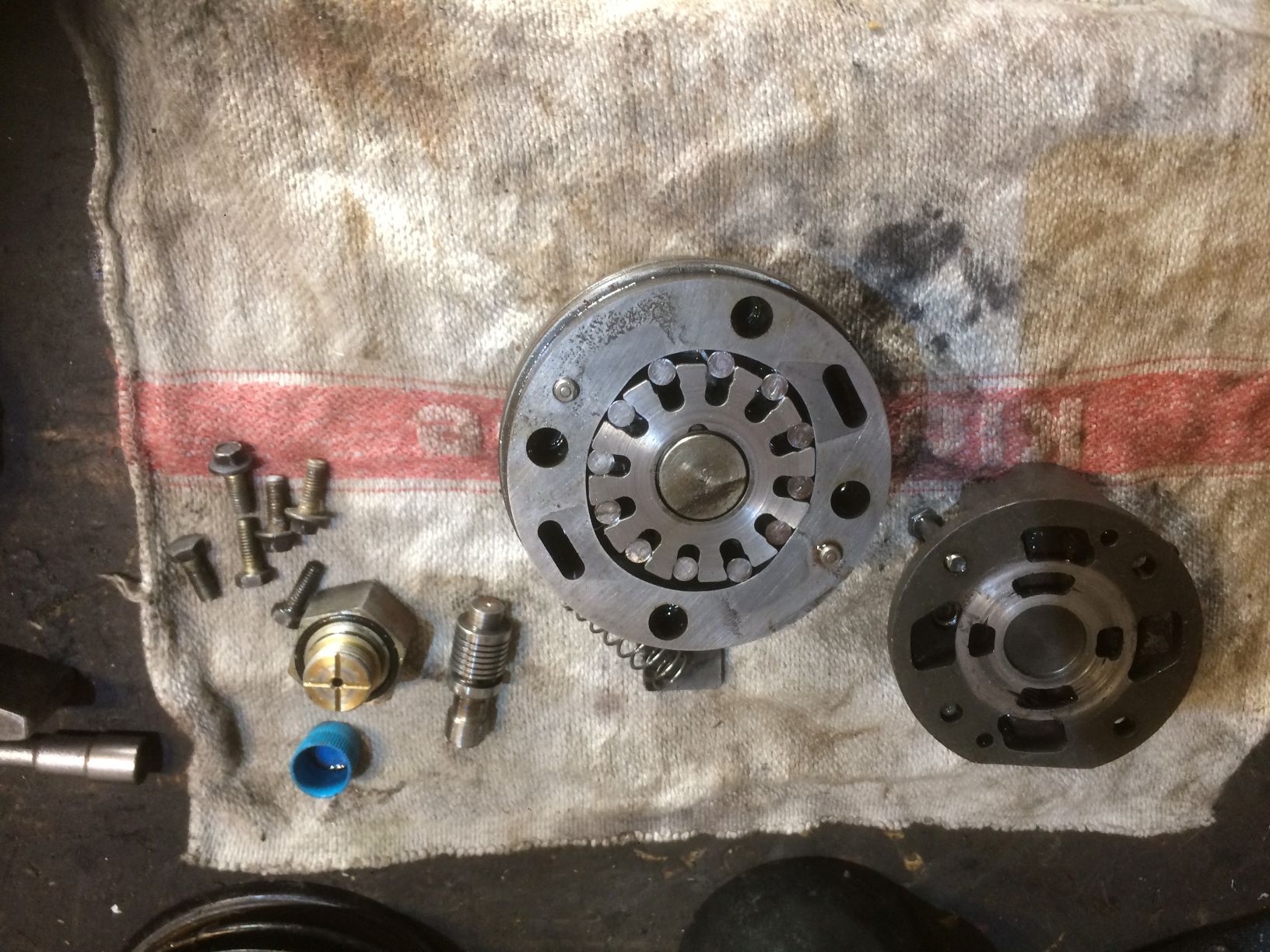 J'ai desserti en "ouvrant" légèrement le bord avec un tourne-visse plat la partie jointure pour libérer le corps de la pompe et son grand torique de son couvercle . Le couvercle ( gros cylindre noir avec un picage allant au réservoir) ne subit pas de pression hydraulique qui ne se situe que dans le corps de la pompe et au niveau du raccord du régulateur d'où l'importance des deux toriques ( plus haut) . C'est ce que j'en ai conclu ..... Pour refermer l'ensemble , j'ai simplement tapoter avec un petit marteau à bomber le verre pour serrer le couvercle sur le torique .... C'est assez surprenant je te l'accorde mais ça ne fuit pas et c'est super simple à faire .Le plus "chiant " sont les deux clips à sortir , pour le reste c'est du gâteau :wink: