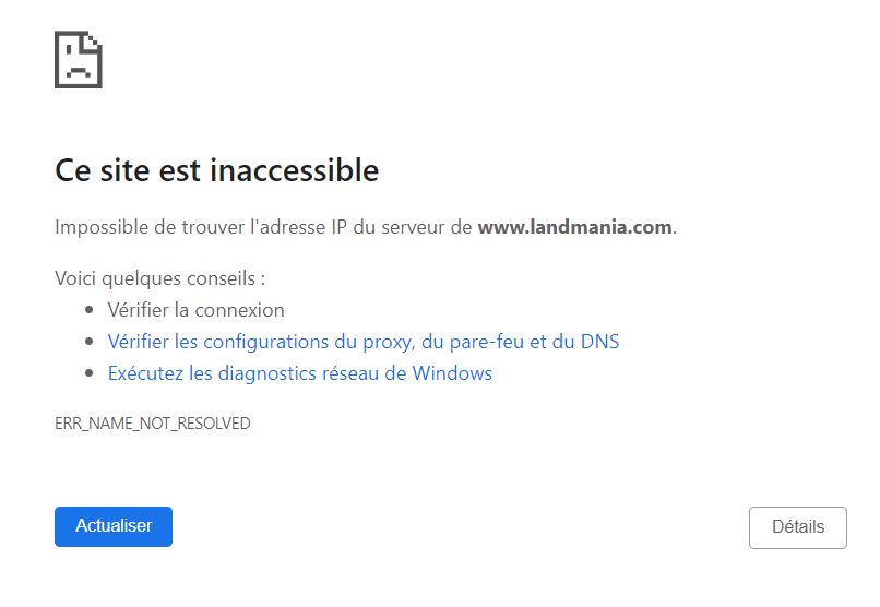 Landmania non accessible depuis cet aprés midi "adresse du serveur introuvable"