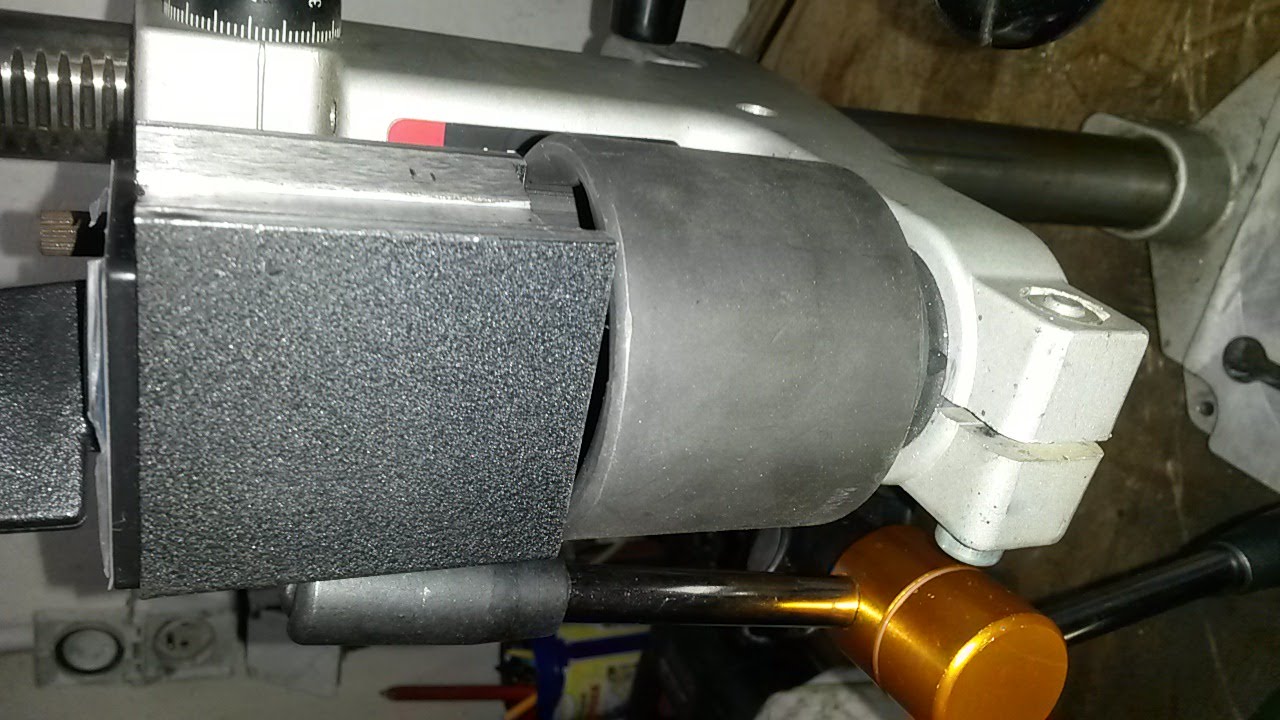 - Presse hydraulique 12T, elle aussi achetée à un prix très accessible sur la toile il y a quelques années, et déjà largement amortie ! En complément, j’ai recyclé un vielle planche à découper de cuisine en téflon, qui est très bien pour ne pas endommager les pièces lors de l’usage de la presse.