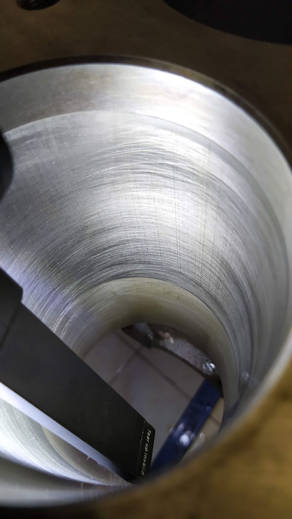 Quelque soit le cylindre, il reste une petite zone située sur la fin de course haute des segments que je n'arrive pas très bien à déglacer. L'usure des cylindres même si elle est minime a créé une petit marche qui fait que les pierres du honoir ne travaillent pas bien dans cette zone.