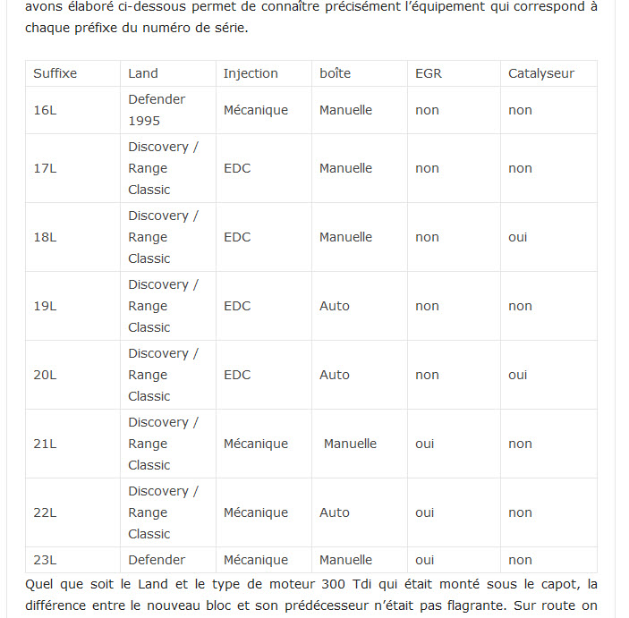 Notons que le deuxième document laisse supposer que le 16L est uniquement sur les Def de 1995, il faut lire à partir de l'année modèle (définition de l'époque). Donc il y a des Def 300 Tdi vendu en 1994 qui ont le 16L, et normalement tout les 300 Tdi sans EGR et sans EDC sont des 16L..... d'après ces documents.