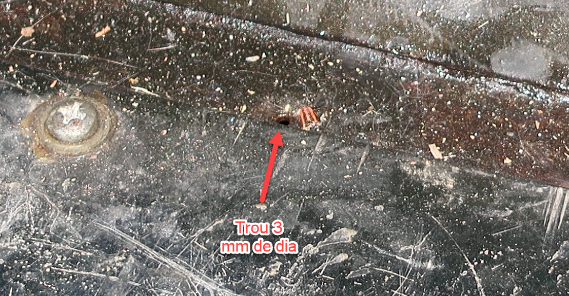 C'est pas évident si on ne sait pas souder, mais il faut le faire, car du mastic sur un trou rouillé ne fera que faire grossir le trou sous la choucroute...