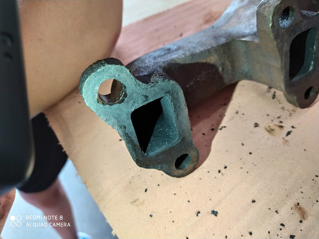Sur mon rrc 3.5 efi, j'ai déposé un premier collecteur car j'ai une belle fuite entre le Y et le collecteur. J'ai commencé à le nettoyer il n'est pas tant mangé que ça par la rouille, il parait récupérable... (Il avait un aspect bien rouillé, je le pensais hs) Par contre la surface est pas mal abîmée au niveau du raccord avec le Y, mais pas non plus sur toute la surface ou repose le joint, il y a un moyen de corriger ça ? Et un conseil pour nettoyer les surfaces de raccord avec le moteur sans rien abîmer ?