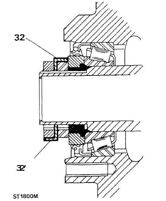 Normalement, l'huile de pont peut atteindre les roulements du moyeu de roue, mais est retenue d'une fuite extérieure par le joint coté interne du moyeu (la lèvre du joint doit être dirigée vers le roulement) et par le cabochon sur la main meneuse.