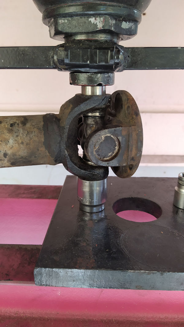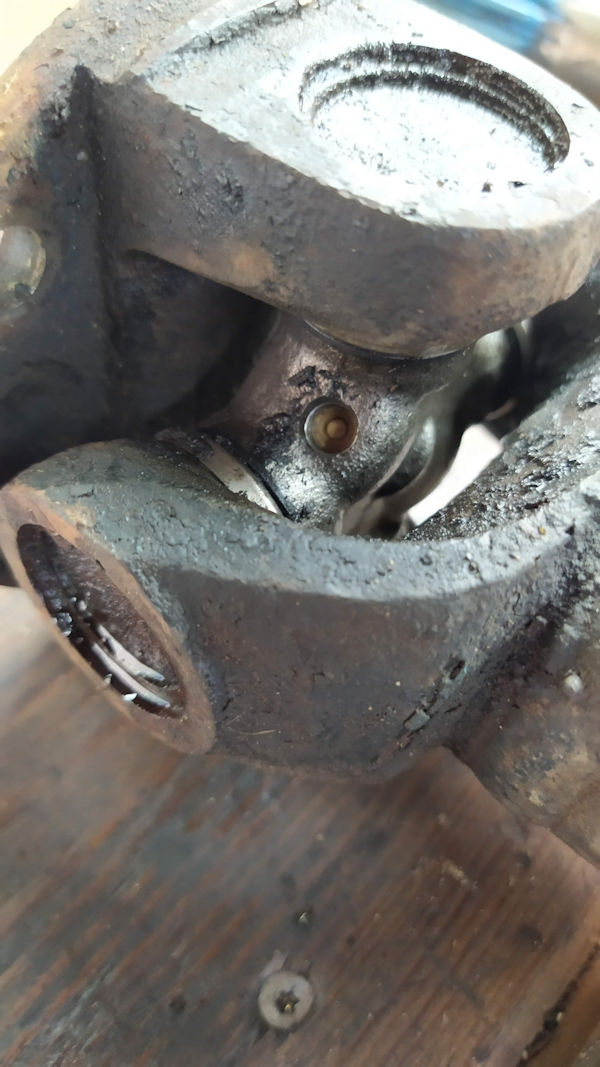 Je dois déposer un autre croisillon sur l'autre arbre de transmission pour la même raison, points durs dans sa rotation. Malgré un graissage insistant à la pompe, les points durs subsistent.