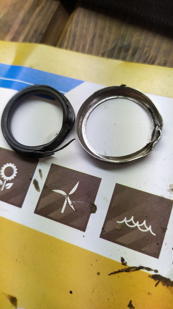 Le petit joint V-ring derrière la coupelle est lui aussi en piteuse état.
