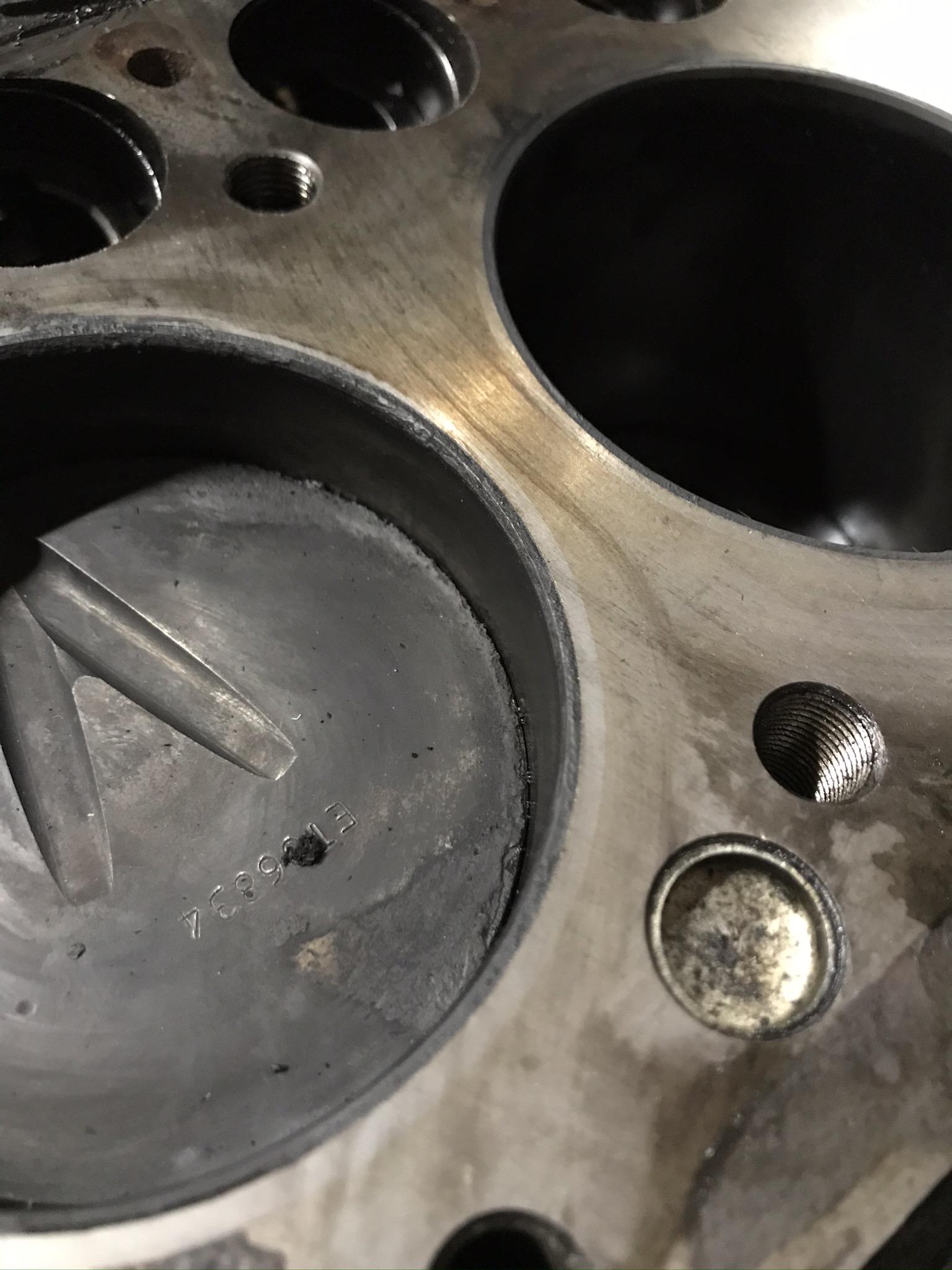 Cylindre 1 Cylindre 2 Cylindre 3 Cylindre 4 Et la culasse, piquée à la rouille sur le cylindre 1, des petites fissures au niveau des pre chambres : J’ai l’impression que tout les pistons ont une toute petite fêlure au niveau de la pointe du V?
