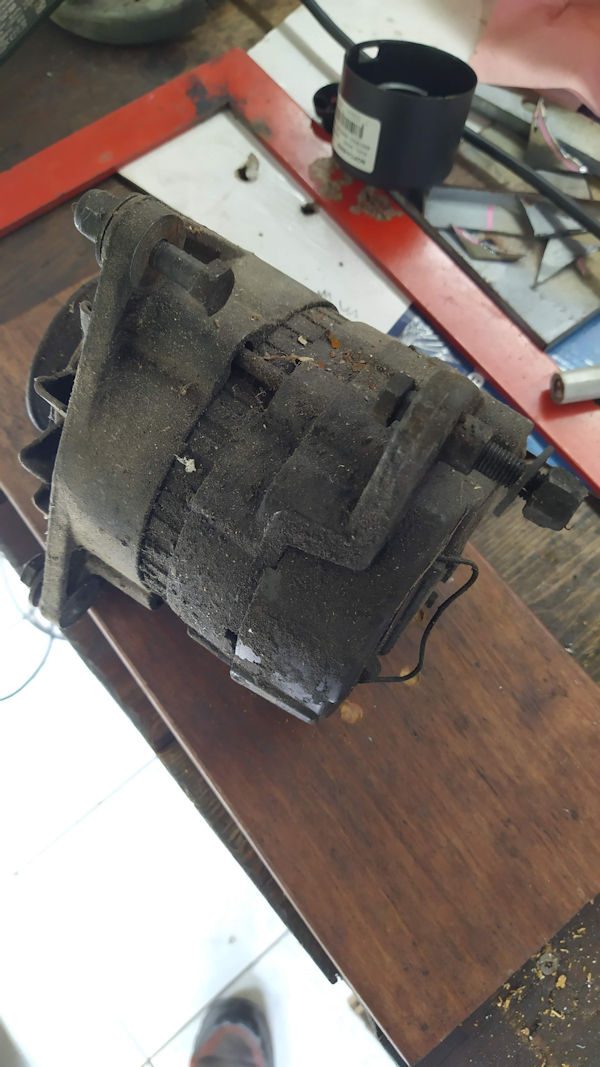 Après inspection, il apparait que les roulements ont un jeu excessif. Prix des roulements, 3.30€ pièce, prix de l'alternateur un peu plus de 100€. Bon, ben au boulot.