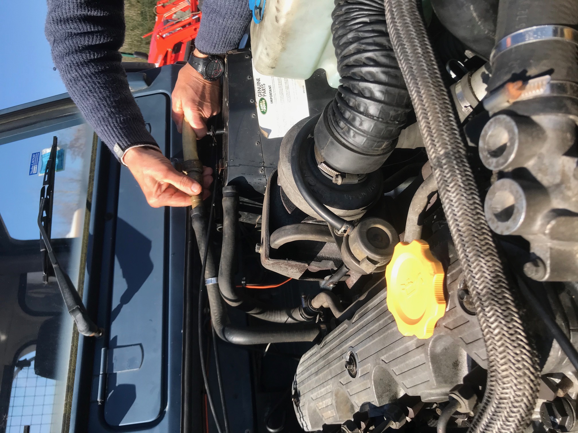 Une fois la durite basse et le boulon revissé sur le bloc moteur, mais avec bouchon radiateur ouvert et vase d’expansion également :
