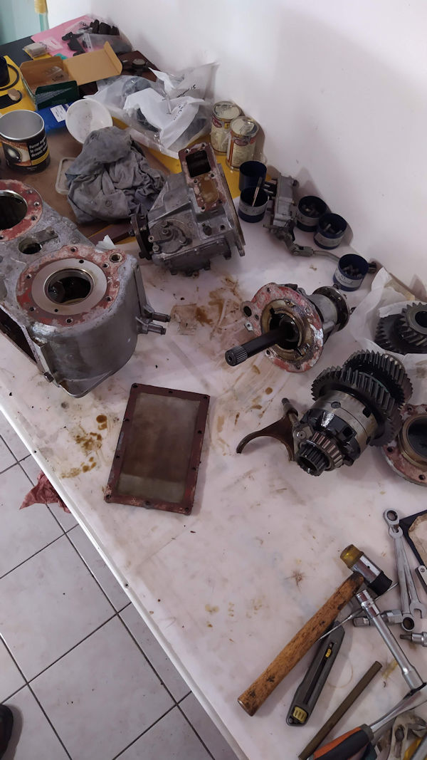 Dépose de l'axe intermédiaire et vérification du jeu axial. Impeccable.