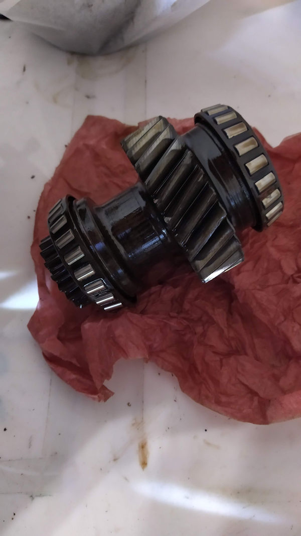 Dépose de l'axe intermédiaire et vérification du jeu axial. Impeccable.