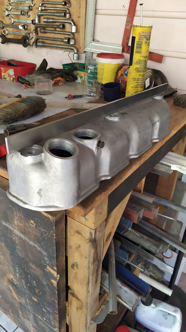 Comme déjà évoqué dans un post précédent, le cache culbuteurs est endommagé en son milieu et enfoncé de plusieurs mm. Pièce qui n'est plus disponible chez nos dealers.