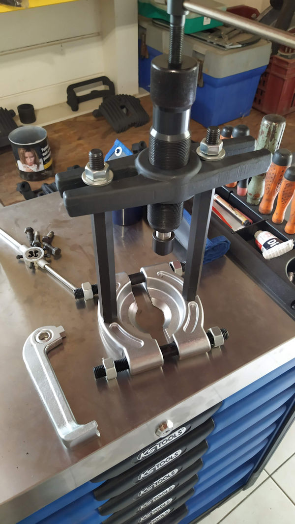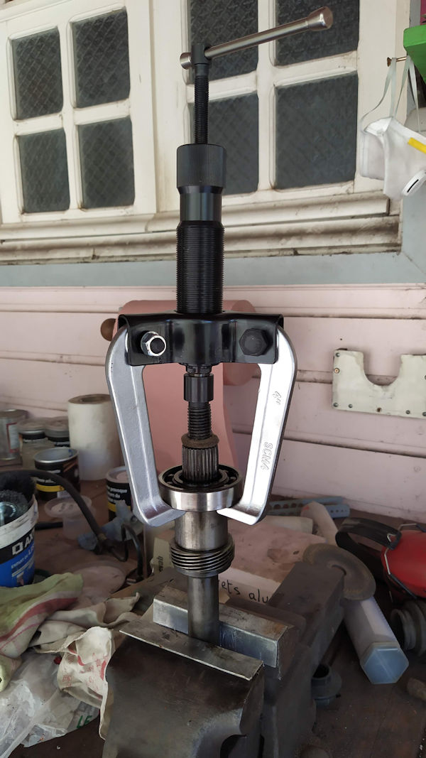 J'ai toujours constaté le même problème. Dès qu'il faut forcer un peu (roulement récalcitrant à venir), l'effort que l'on met sur la clé de serrage de la vis principale a tendance à mettre l'extracteur de travers. De plus, on perd pas mal d'énergie dans les frottements entre la vis principale et le trou taraudé de l'extracteur. La pointe de la vis peut endommager le bout d'arbre.