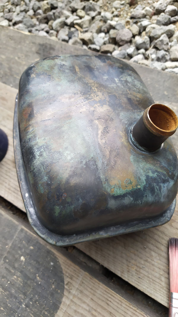 Origine de la tôle : Récup d'une carcasse d'électroménager. La tôle est galvanisée, je la decape entièrement mais pas tout a fait parfaitement.