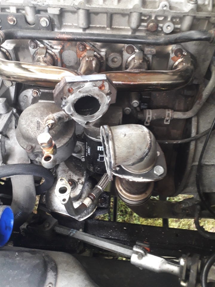 Suite à un gros problème moteur (culasse fendue, gas oil dans le moteur, bielle coulé, vilebrequin hs donc beaucoup d’€ et de main d’oeuvre perso) je devais changer le turbo. Vu que c’est une ancienne génération, j’ai opté pour un turbo géométrie variable. Le prix m’a vite refroidi. En cherchant beaucoup, celui qui correspond le mieux’ c’est un de laguna, une platine fait maison entre l’échappement (nouveau modèle en inox), trois durites droites et 50 cm du tube en alu, un peu d’heures et ça fonctionne très bien. Gros avantage, c’est la reprise et le fameux trou à l’accélération qui est supprimé. Si cela intéresse, je vous ferais le kit en photo.