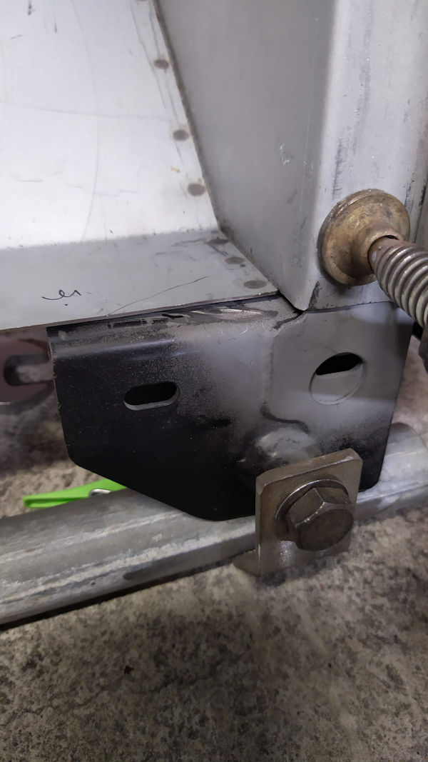 Il est bien fatigué, je vais en faire un autre. Je récupère de la tôle saine dans un des footbox. Et en avant la musique : Pliage : Ebauche des trous : Préparation pour la soudure : Mise en place, pile poil ajusté :