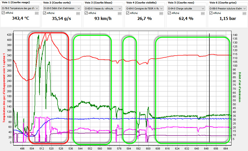Donc l'EGR re-circule moins de suies dans le moteur en sixième qu'en quatrième.