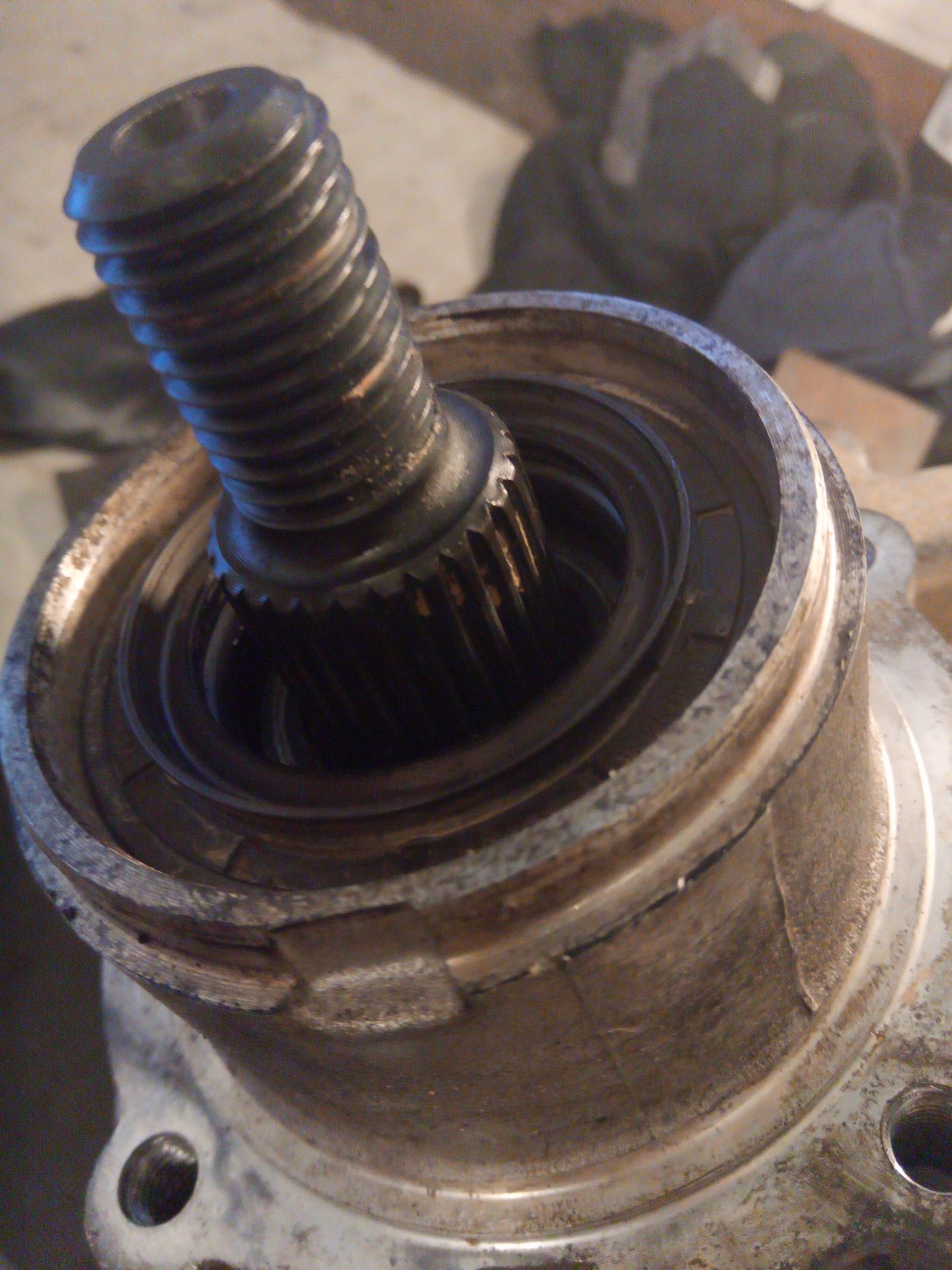Sans doute que la collerette jaune (qui semble montée à l'envers) a entrainé le spi suite à la compression de la lèvre anti-poussière ...