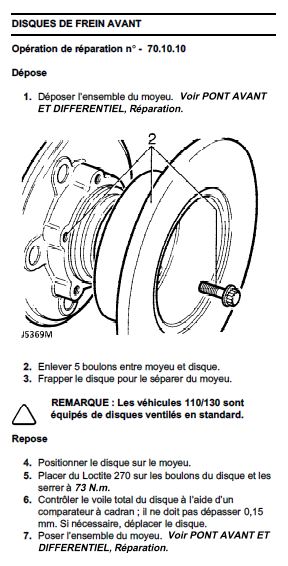 on peut peut-être s'inspirer de la recommandation du manuel concernant le disque de frein, 0.15mm de voile maxi: Il faudra que ça soit bien moindre au niveau du moyeu, bien évidemmentPAULIN a écrit : 05/02/2022 18:34 Je ne sais pas si LR indique une tolérance pour le battement axial des moyeux quelque part.
