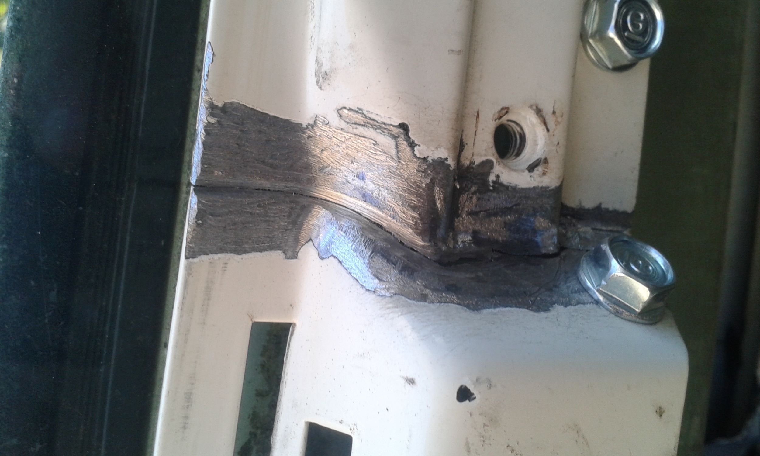 Ces parties intérieures cassent ou sont bouffées par la rouille passé un certain âge, et comme les panneaux de porte ne sont pas des habillages que l'on retire souvent. On dirait qu'il a déjà été soudé, mais pas traité contre la corrosion