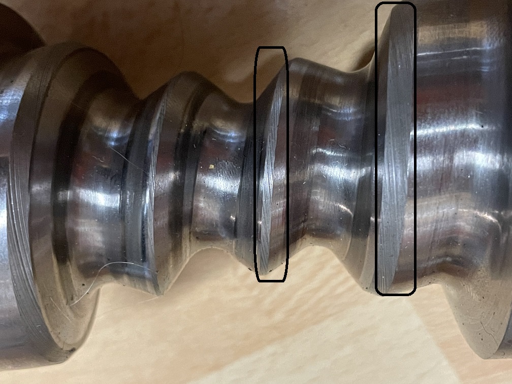 De plus l'arbre montre, non seulement de l'usure abrasive, mais aussi de l'usure adhésive (grippage). Enfin, ce qu'il me semble sur la photo. C'est rattrapable par rectif selon la profondeur des dommages, mais je ne saurai pas te donner des valeurs.